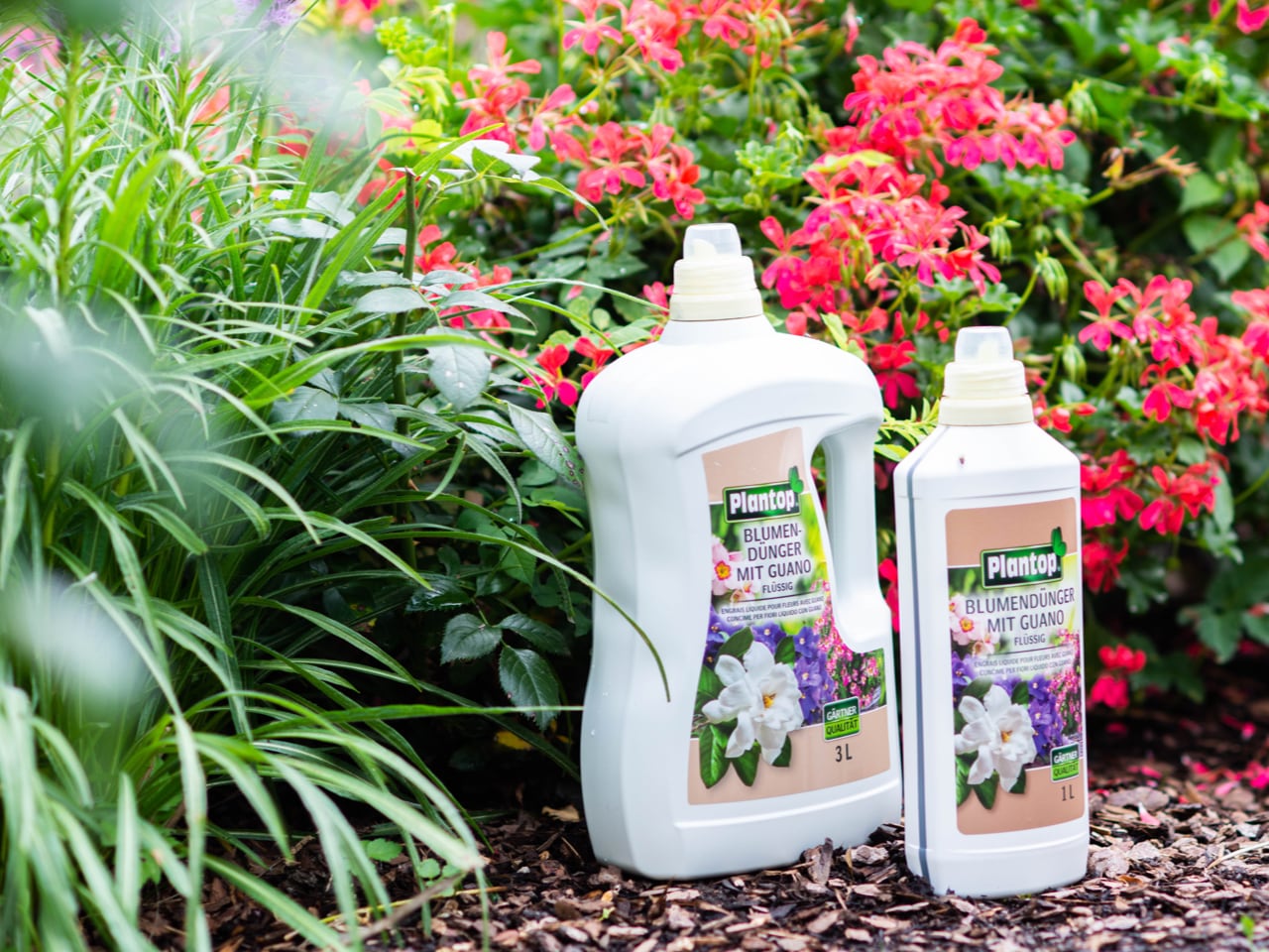Zur Unterstützung Ihres grünen Daumen´s: Der Plantop® Blumendünger mit Guano sorgt für kräftige und satt-grüne Pflanzen.